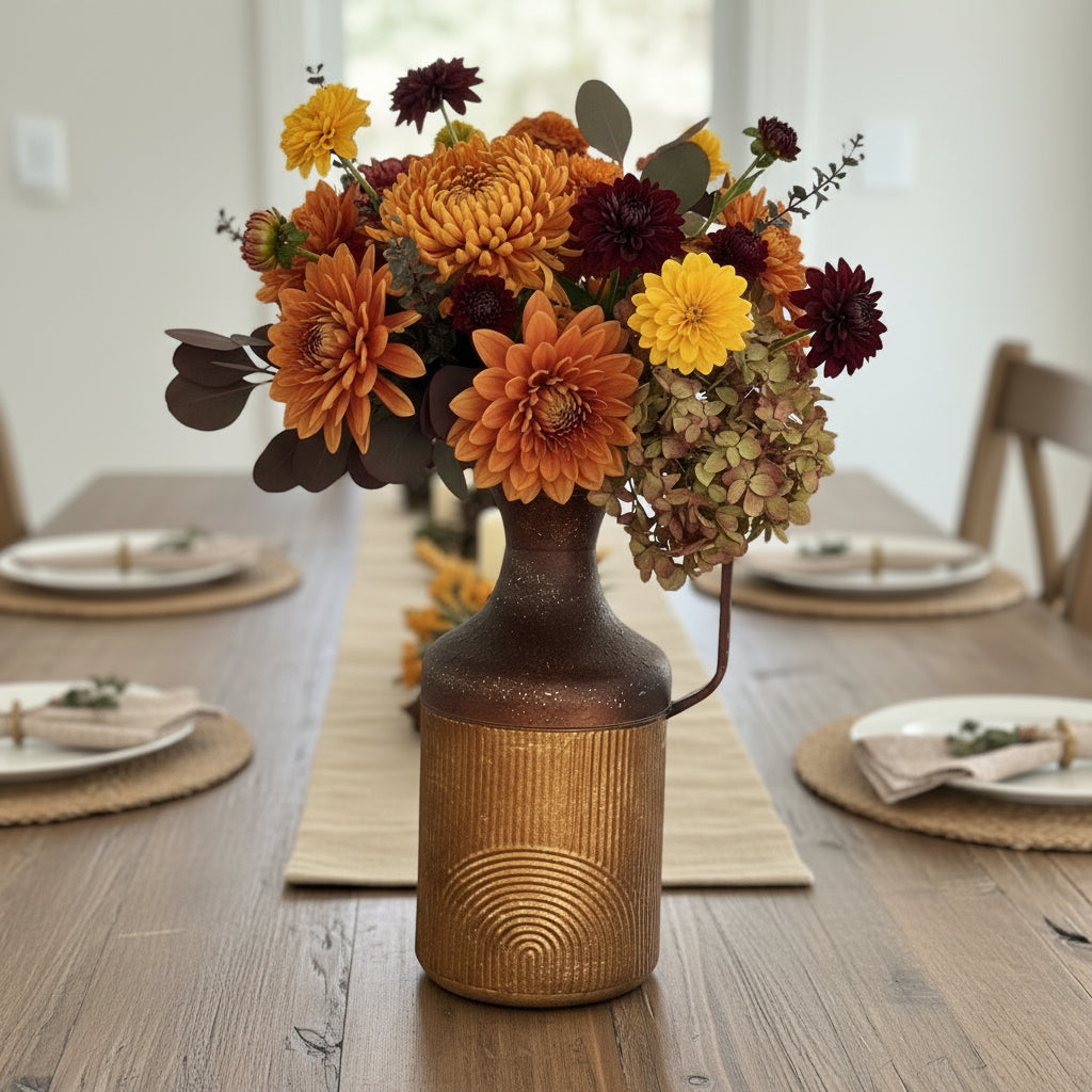Bold and sculptural, this gold-bronze metal vase brings antique charm, elegant curves and eye-catching elegance. A true statement for living rooms, offices, entryways or a perfect focal point on mantels or consoles.